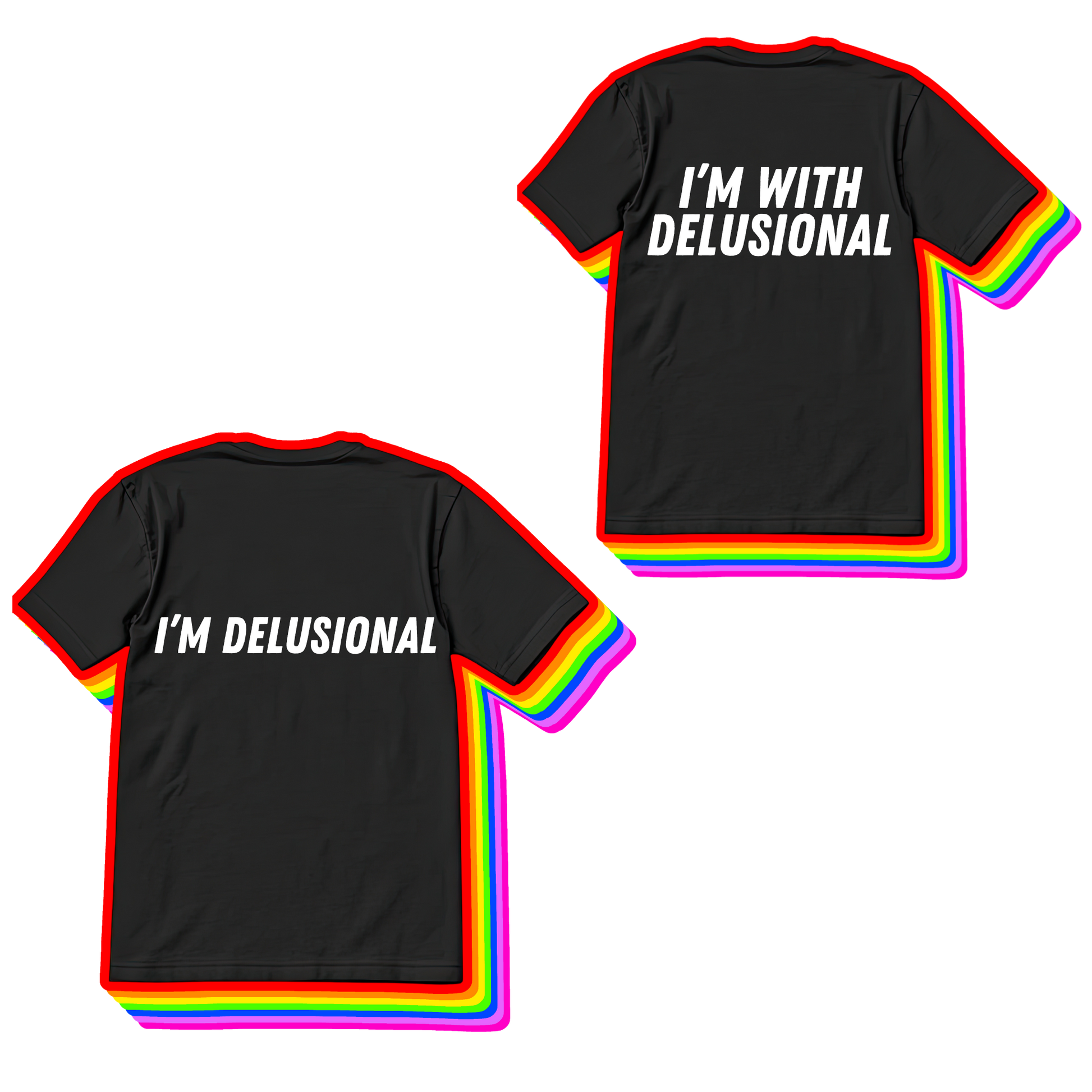 Our 'I’m Delusional / I’m With Delusional' set is an adorable way to twin with your delulu bestie, partner, or sibling.