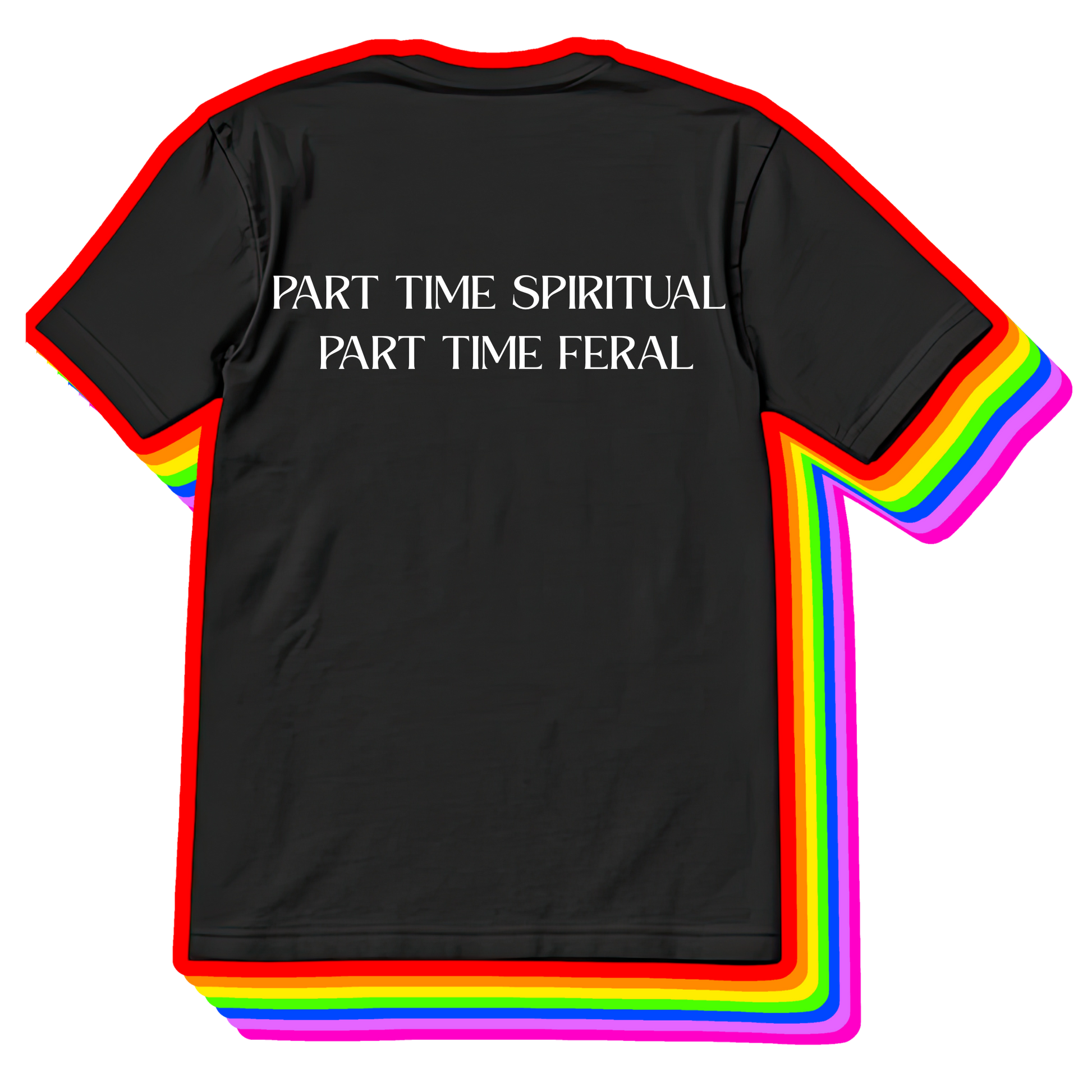 Our 'Part Time Spiritual, Part Time Feral' tee is for the ones who meditate Monday to Friday and go absolutely feral on the weekend. Because life’s all about balance.